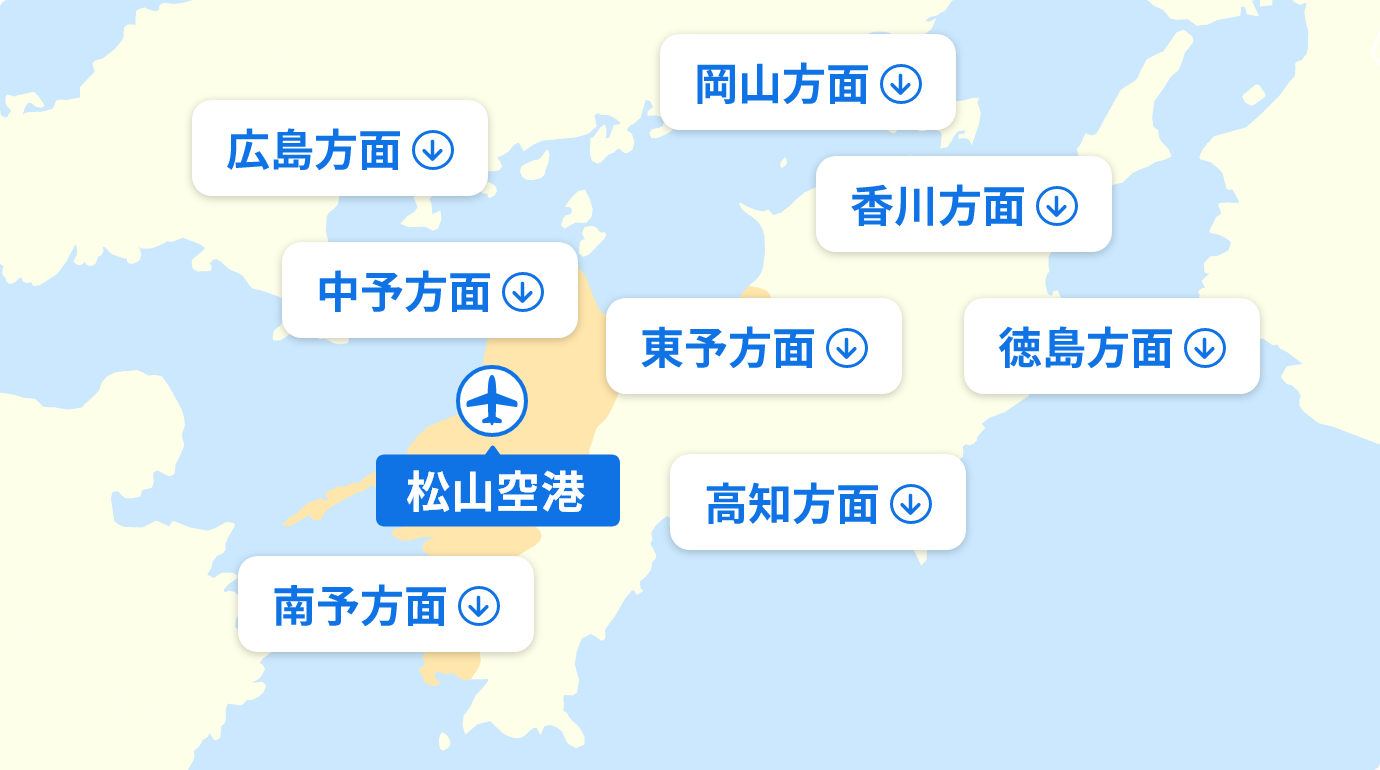 松山空港までのアクセス方法や各種交通機関をご案内します