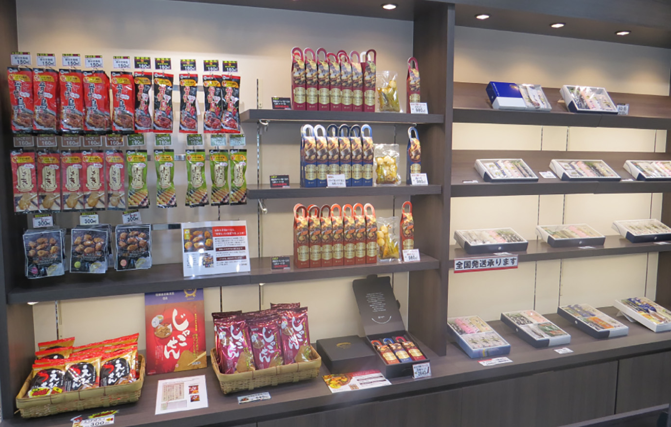 南予名産の「じゃこ天」の実演コーナーがあり、いつでも揚げたてで、アツアツの味をお楽しみいただけます。