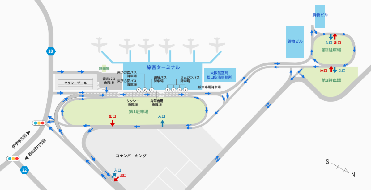 松山空港へ車・バイクでお越しのお客様へのご案内です