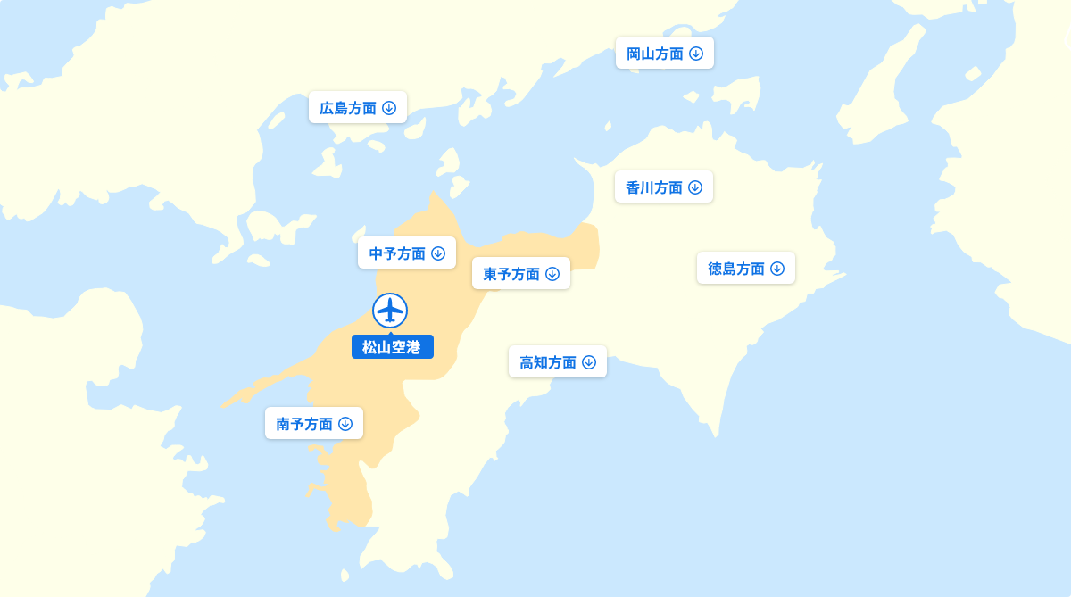 松山空港までのアクセス方法や各種交通機関をご案内します