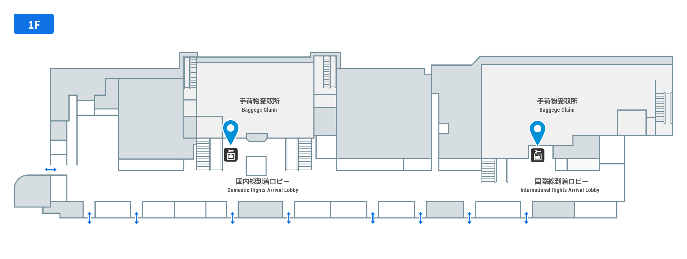 | その他 | 「両替機」は、国内線2階出発ロビー前にあります。 使用開始日を含め、4日以上お預けになる方は総合案内所へお声掛けください。 |