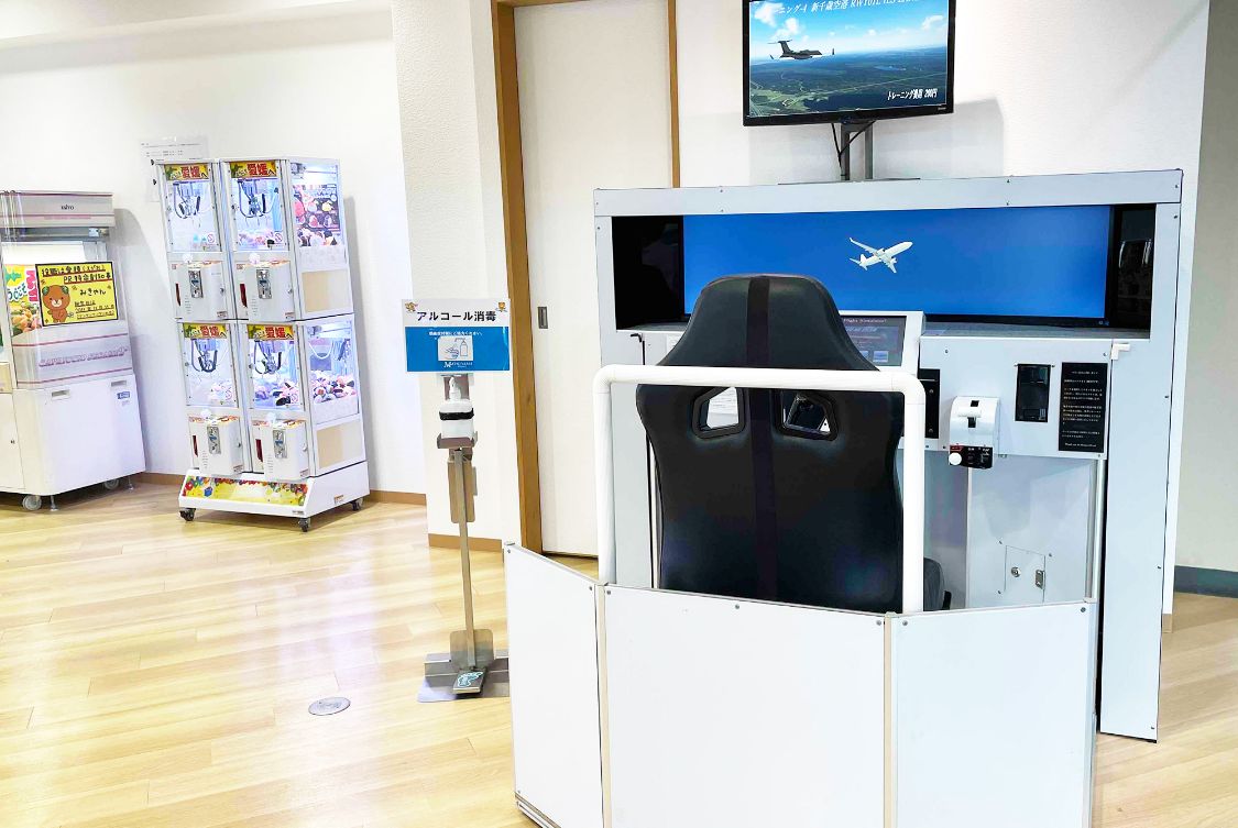 SKY PARKには、1回200円で約4分間の飛行機操縦体験ができるフライトシミュレーター、あこや真珠アクセサリー製品・みきゃんグッズ等々が景品のカプセルトイ、更には、地元鉄道会社である伊予鉄道の路線を収録しているレトロな鉄道ゲームやUFOキャッチャー等の各種ゲーム機や松山空港限定のオリジナルフレームで撮れるプリントシール機を設置している他、航空機を眺めながら休憩できるコーヒーカウンターを設けております。