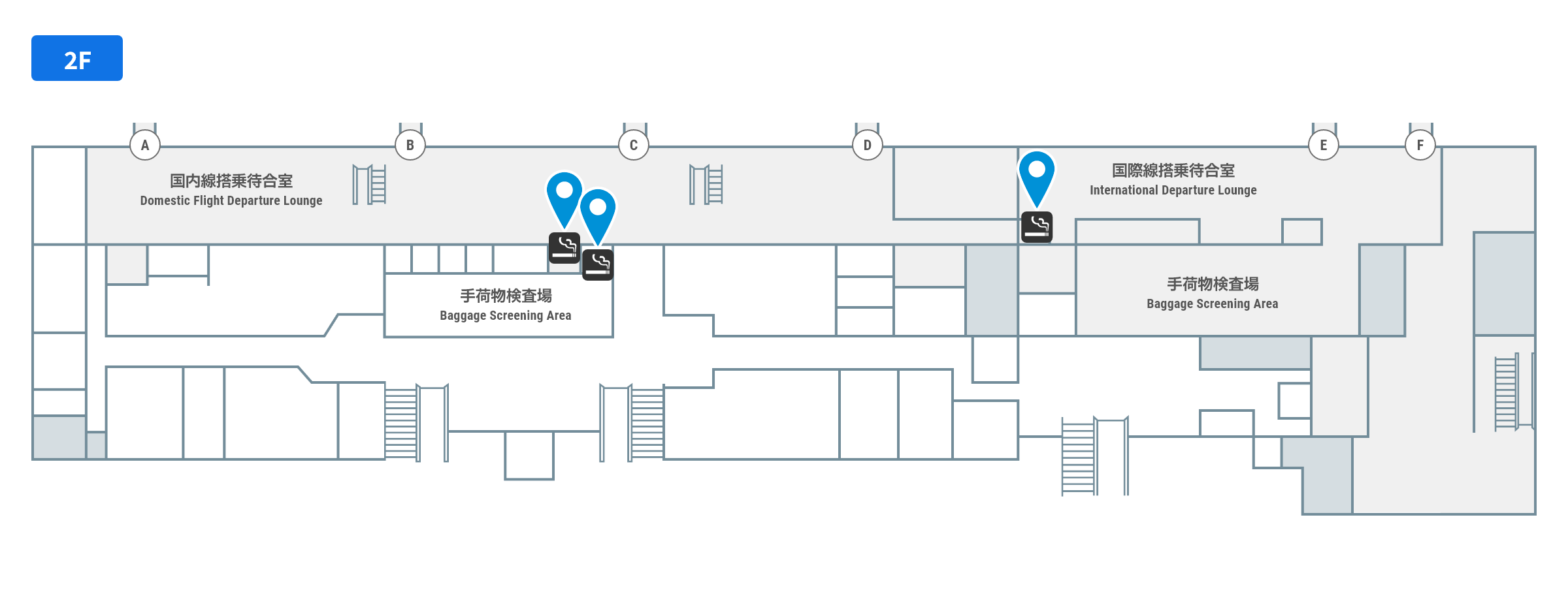 喫煙所はターミナル各所にございます。