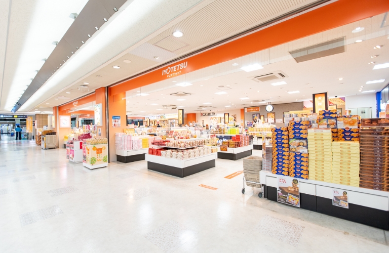 いよてつショップは、松山空港内でもひときわ広い売場面積を誇り、ゆったりとした空間でお買い物をお楽しみいただけます。愛媛の銘菓や特産品、空港限定商品など、「喜ばれるおみやげ」を豊富に取り揃え、皆様のご来店を心からお待ち申し上げております。商品の発送も承っておりますので、お気軽にお申し付けください。