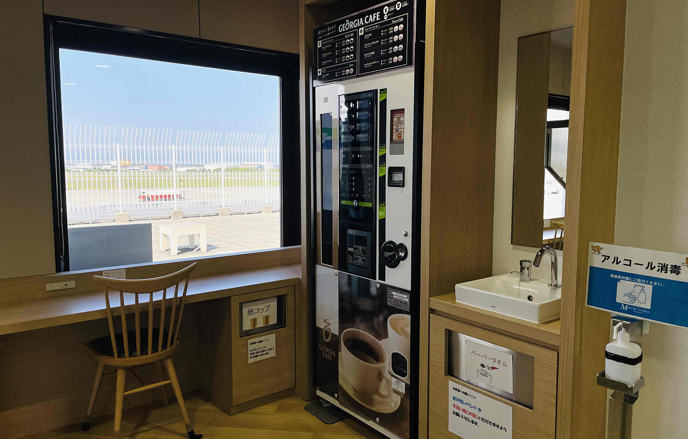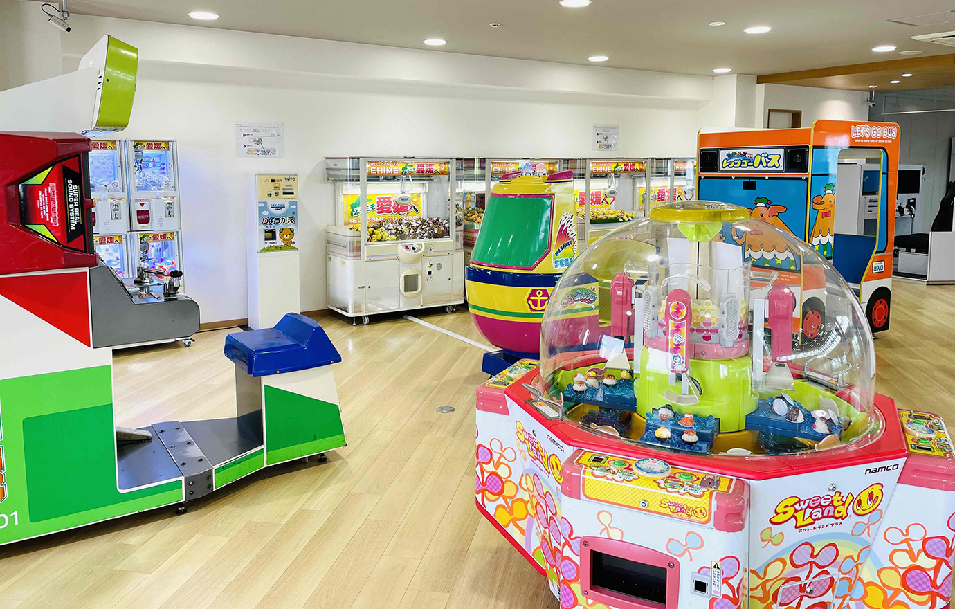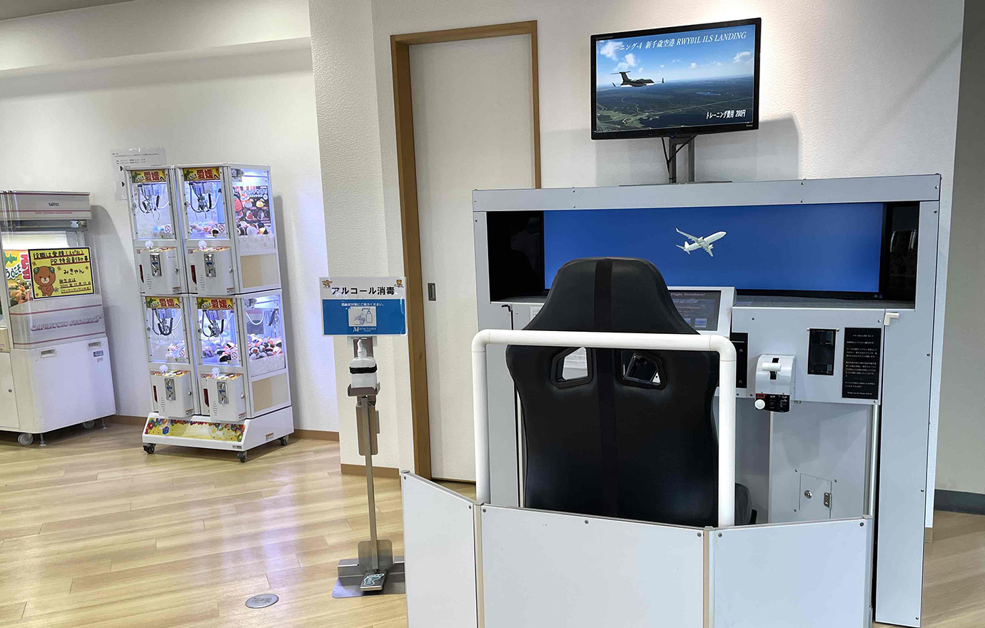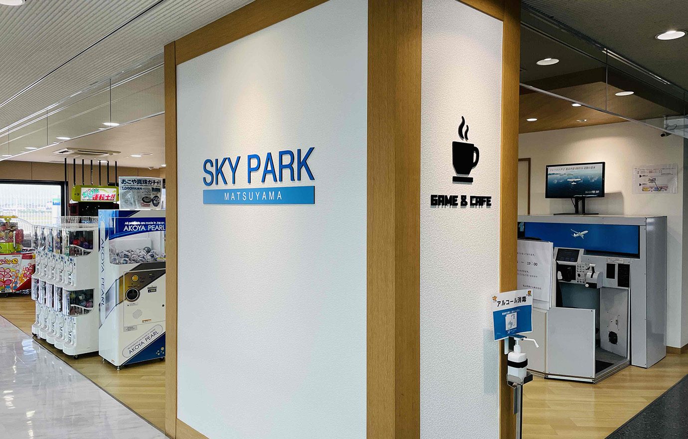 SKY PARKには、1回200円で約4分間の飛行機操縦体験ができるフライトシミュレーター、あこや真珠アクセサリー製品・みきゃんグッズ等々が景品のカプセルトイ、更には、地元鉄道会社である伊予鉄道の路線を収録しているレトロな鉄道ゲームやUFOキャッチャー等の各種ゲーム機を設置している他、航空機を眺めながら休憩できるコーヒーカウンターを設けております。